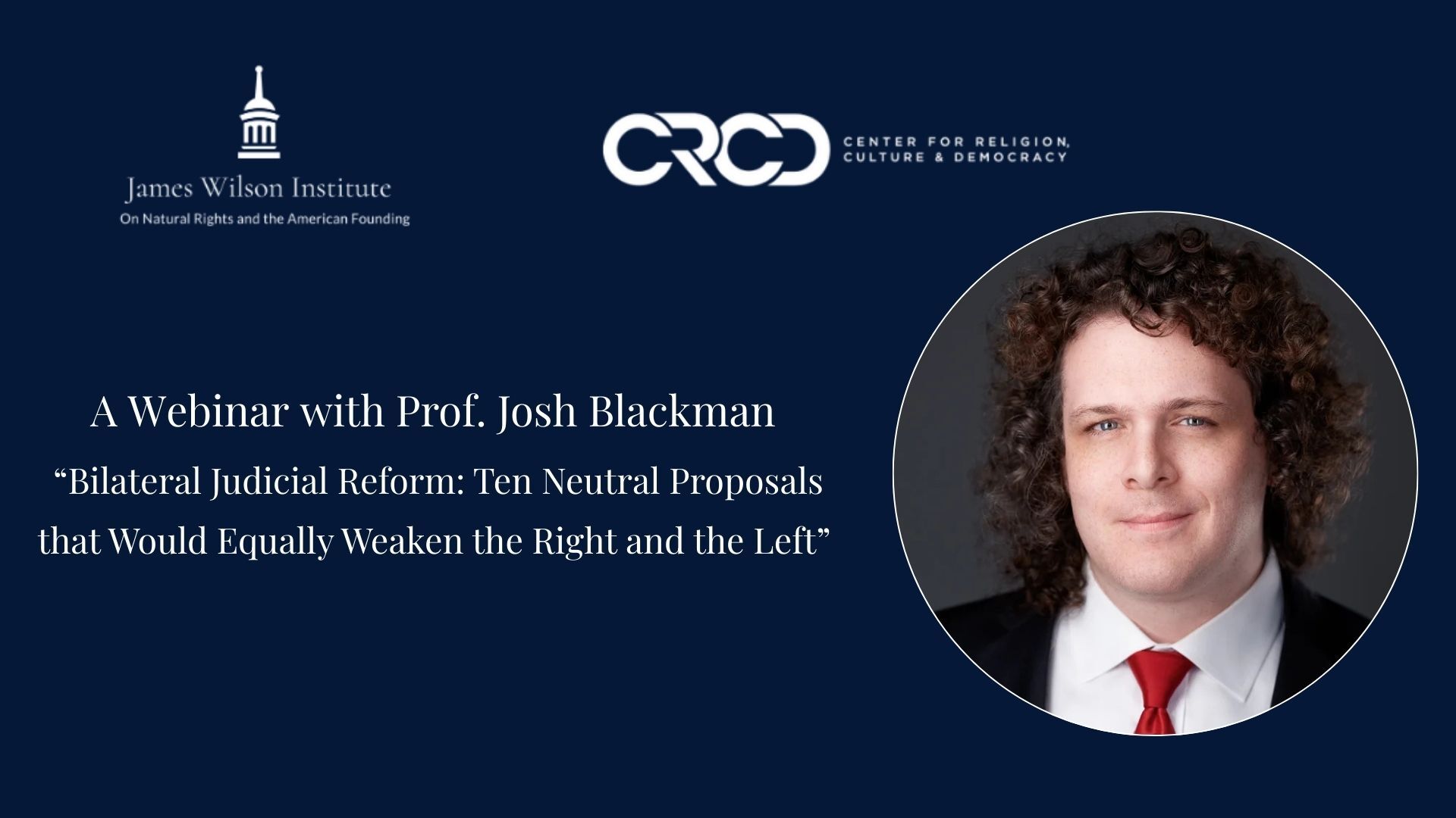 Bilateral Judicial Reform: Ten Neutral Proposals that Would Equally Weaken the Right and the Left with Prof. Josh Blackman