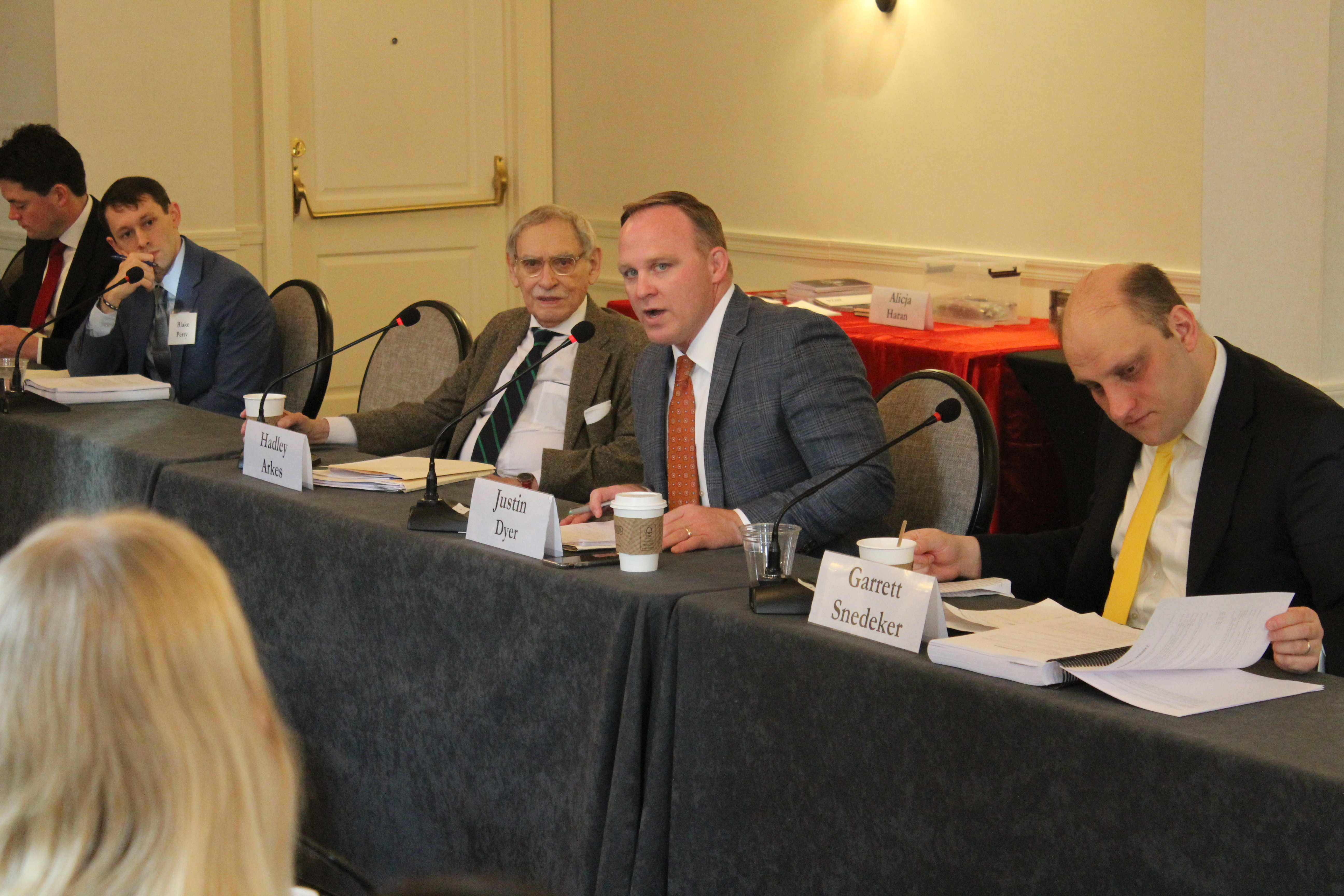 Our "late night" offerings included a cocktail hour with alumni and JWI friends one night, while another night Fellows joined Prof. Bradley and other faculty for more casual, open-ended discussions over what cases the Supreme Court might consider in the future over pizza and wings.