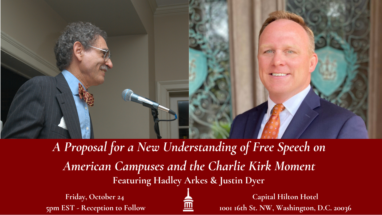 In light of the tragic killing of Charlie Kirk, the culture of American Campuses and Free Speech - which Kirk fought so hard for - are more relevant than ever. Profs. Hadley Arkes & Justin Dyer will share a discussion of a new way to look at free speech, its purpose, and the best way to restore the role of the American Universities.