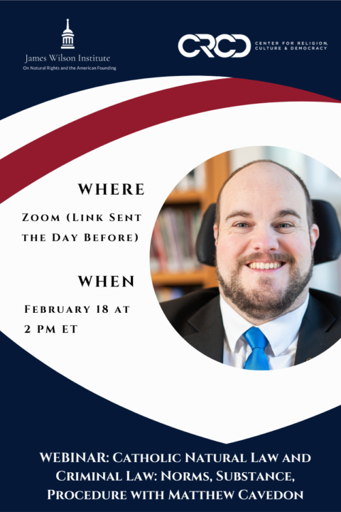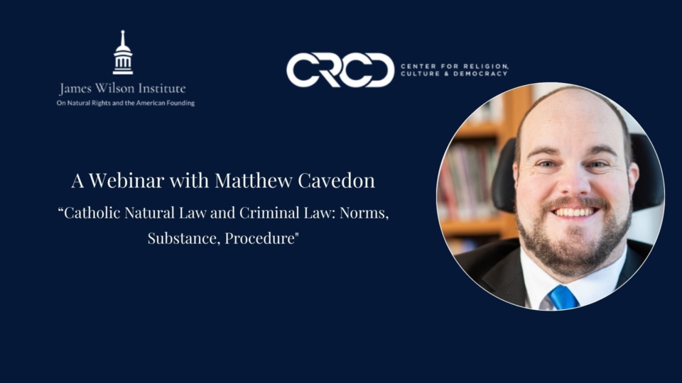 Matthew Cavedon will consider the reasons society imposes the criminal sanction, and limits on doing so, in the light of the Catholic natural law tradition. Then, he will examine how protections for the accused reflect natural law principles. The presentation will identify anthropological commitments that should inform the criminal law, then evaluate the extent to which modern American criminal law aligns with them.