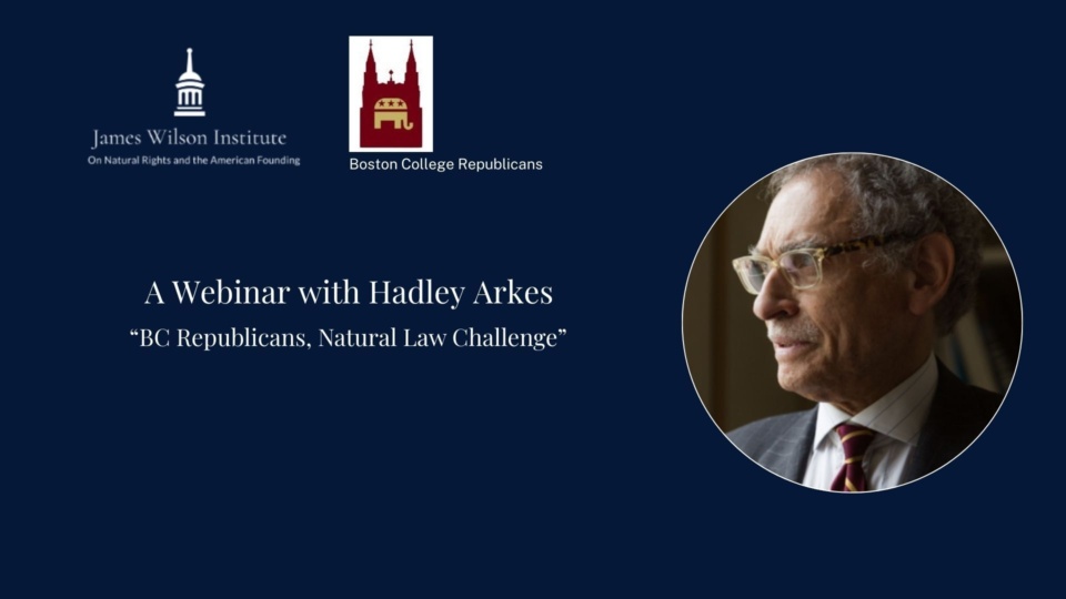 The Boston College Republicans invite you join them for an evening with JWI Founder and Director Hadley Arkes. Prof. Arkes will speak on “The Natural Law Challenge.”